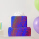 Branch stencil alternates in a slight diagonal design left to right from light green, bright red stencil against a background of cobalt, pale green background with red stencil, cobalt background with red stencil, to half red/half orange against a lighter orange and red background
