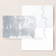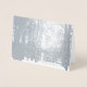Just a light dusting of snow among the silvery trees. Text inside: "Peace and Joy, for the Holidays and Always."