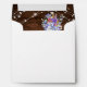On the outside flap are placeholders for your names and address, along with a small watercolor bouquet of wildflowers in a mason jar. On the inside of the flap is an image depicting rich brown rustic wood. Overlaying the wood texture are strings of white twinkling lights and a bouquet of colourful wildflowers. Designed to match a pretty wedding and event collection, you will find an array of cards for which these envelopes are ideal.