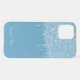 Contemporary light and dark vintage Mediterranean sky blue coloured faux glitter cellphone case. With room to customise with a name, monogram, or initials of your choice. Beautiful, modern, and cool cover for the trend-savvy and art-loving hip trendsetter, artsy motif lover who wants to protect their phone from dust and dirt, wear and tear. This design is available in Apple iPhone 6, 7, 8, 10 or X, XR, XS, 11, 12, 13 Mini, 14, 15 Plus, and Pro Max cellphone cases. Show off your style, look fashionable, and feel stylish with a unique design on a mobile device accessory of your choice.