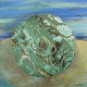 This round pillow features a teal (kink of a mint), grey, tan, and cream swirl. The pattern looks a bit organic - it reminds me of swirled agate, tie-dye, fractals, and marble. This pillow is available in a choice of fabrics.