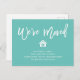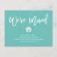 These modern and trendy new address moving announcement features elegant, white handwritten script typography that says "we've moved", on a colourful, light teal background. A little matching house also decorates the front, and there is room to add a message on the back if you wish with more information about your new home. A simple and stylish way to let friends and family know that you have moved!