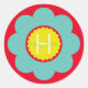 Light Teal and Yellow Flower on Red Monogram Classic Round Sticker