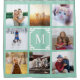 Eight photos in a modern minimalist grid design around a light teal and white Greek Key border motif monogram.