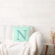 Light Teal Initial Letter Trendy Pastel Mint Blue Cushion