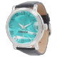Light Teal Ocean Waves Cool Marbled Custom Name Watch