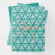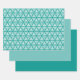 A set of three decorative 19x29" wrapping papers: a patterned sheet featuring a spiralling sea green pattern featuring clusters of blue-green swirls against a light background, and solid beach green and teal sheets for sophisticated gift presentation collection, and diy craft projects
