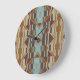 Light Teal Turquoise Blue Orange Brown Tribal Art Large Clock