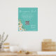 Pretty honeymoon fund sign features watercolor white daisies corner on light teal background  with  white customisable text blocks in modern fonts.