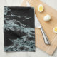 Light Turquoise Vein Black Marble Look Tea Towel