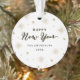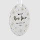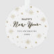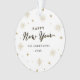 This fun design features a black, gold and white colour scheme, with fireworks and star graphics and a hand lettered font that reads "Happy New Year". Add your photograph to the backside of the ornament for a personalised touch.