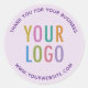Personalise our round business thank you stickers with your company logo and custom text. These are professional scratch resistant stickers printed on acid-free paper. You can customise the words "Thank You for Your Business" to your own message in your preferred language. Available in a glossy or matte finish as 3 inch or 1.5 inch stickers. Designed in light purple and other colours (all colours are customisable). Low minimum order quantity and no setup fee.