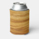 A can cooler with a photograph of a wooden panel showing the wood grain.