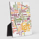 Word Cloud Format: The unique arrangement of words in different sizes and orientations visually represents the frequency or importance of the terms, enhancing the dynamic feel of the artwork.