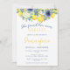 Evoke a sense of freshness with this watercolor blue and yellow floral lemon Bridal Shower invitation. Delight your guests with a playful message: "She found her main squeeze." Perfect for a lively and citrus-infused celebration.