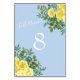 Light Yellow & Pale Blue Rose Floral Wedding Table Number