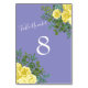 Light Yellow & Periwinkle Blue Rose Floral Wedding Table Number