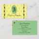 Light Yellow Sage Green with Patterned Monogram Business Card