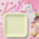Light Yellow & White Checks Chequered Pattern Paper Plate