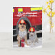 Myrtie & Moses in fire hats & protective eyewear, with a fire extinguisher. Inside it says "With a blaze that big and hot, we thought safety measures were in order. .........HAPPY BIRTHDAY!" All the text and background colours can be customised. The part of the fire engine in the background is thanks to PublicDomainPictures.net.