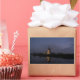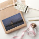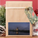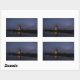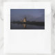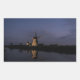 Rectangular photo sticker with illuminated historic windmills with reflection in the water of the river during the Blue Hour at the beginning of the night in Kinderdijk in the Netherlands.