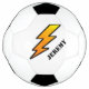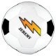Personalised soccer ball, with graphics of a big lightening bolt decorating one side of the ball. Personalise the black text for yourself or as a great gift idea.