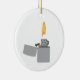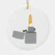 This beautifully detailed design shows a silver cigarette lighter with a large flame.