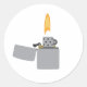 This beautifully detailed design shows a silver cigarette lighter with a large flame.