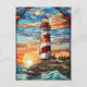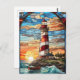 Lighthouse and Sunset Stained Glass Illustration Postcard