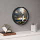 Wall Clock, 25.4 cm Round Black Wooden Frame