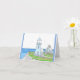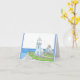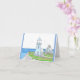 Original Hand Drawn Lighthouse Blues Folded Note Card; Small Size; Light Blue Trim