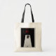 Stylised photo of white and red lighthouse with crow on black background on natural material tote. Very striking modern art.