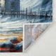 This dynamic expressionist tapestry captures the raw energy of a stormy seascape, with a lighthouse standing resilient amidst the turmoil. The scene is alive with swirling clouds and waves, depicted in bold, impasto brushstrokes that convey the movement of the wind and water. A spectrum of vibrant colours explodes from the lighthouse beacon, symbolising hope and guidance through life's tumultuous journeys. A small, weathered seaside cottage huddles near the lighthouse, adding a touch of serenity to the chaotic beauty of the scene. Birds caught in the tempest swoop across the canvas, adding to the sense of motion. This piece is a testament to the enduring spirit of maritime life and would make a striking statement in any space that values the power and beauty of the sea.