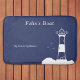 Elegant & simple navy blue bath mat with an illustration of a lighthouse!
