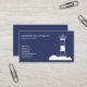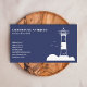 A navy blue business card with an illustration of a lighthouse and customisable information! It could be used for real estate agent, antiques store, honey seller, vacation rentals by the sea, counselings, but also as corporate or small business.