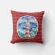 Lighthouse, on Crimson Red with pinstripes Cushion