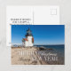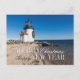 Lighthouse on the Beach with a Christmas Wreath Holiday Postcard