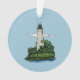 A lighthouse stands proud on a tiny islet in this original artwork by Richard H. Fay.