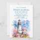 Charming 100th birthday party invitation with a watercolor painting of a nautical scene of a pretty lighthouse surrounded by pink flowers. Contact me for assistance with customisation or to request matching or coordinating Zazzle products