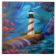 Beautiful red and white striped Lighthouse on a rocky outcropping