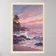 Lighthouse Sunset Print Muted Blue and Pink - Coastal Graphic Art