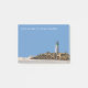 Coastal lighthouse theme sticky notepads in a clean minimalist design with image of a lighthouse at the beach coastline and lots of message space long with a from the desk of you can personalise with your name, business name, or Church name. Designed as notepads you can use to leave notes for customers, coworkers, associates, or inter office communication.