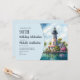 90th birthday party invitation for women with the painting of a beautiful old lighthouse on a small tropical island. Text, fonts, and wording are completely customisable, so although this card is designed for a lady who is celebrating her 90th birthday, it can be customised for any age. Contact us for help with customisation or to request matching products.