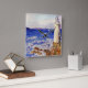 LIGHTHOUSE WALL CLOCK - BEACH DESIGNER GIFTS - BEACH SCENES - THEMES - INTERIOR DESIGN - INTERIOR DECORATING - WALL ART - WATERCOLOR PAINTINGS - BEAUTIFUL CLOCKS - BUY CLOCK - SQUARE CLOCK - BLUES - BLUE CLOCK - ART CLOCK