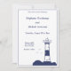 Elegant & simple wedding invitation with an illustration of a lighthouse in navy blue tones for a marine and nautical theme wedding!