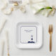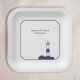 Elegant & simple paper plates with an illustration of a lighthouse in navy blue tones for a marine and nautical theme wedding!
