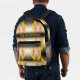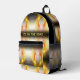 This Backpack features a fractal design in bright yellow combined with orange on striped black background - a modern, delicate, digital work. Custom text. Unique Backpack for everyone!