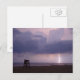 Beautiful postcard with a photo of a lightning bolt strike over the ocean in front of a lifeguard tower in Daytona Beach, FL.