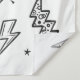 Hand-drawn doodles of lightning bolts and thunder signs burst with retro energy.