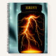 Cool digital art custom notebook features a dramatic glowing lightning strike inside a closed jar. Personalise with name or monogram and choose from a variety of paper style inserts.